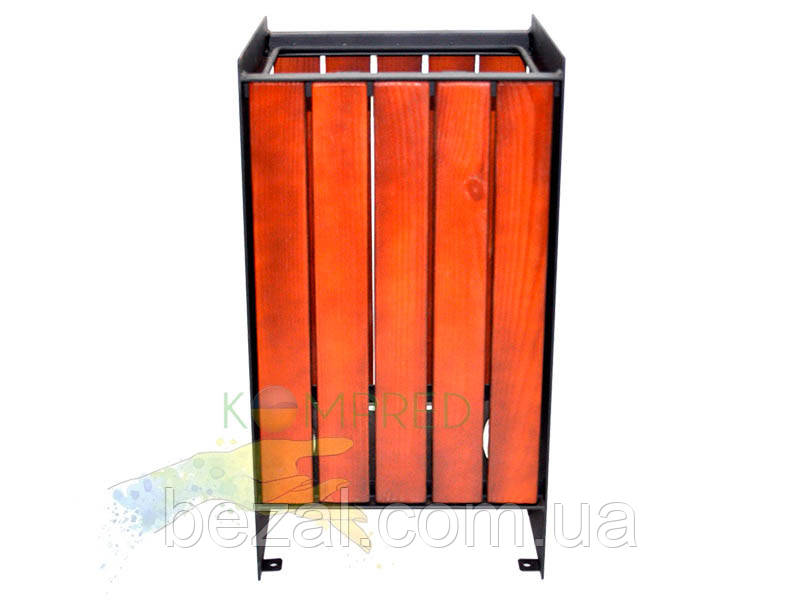 Урна металева паркова на 36 л 350х300х600 мм чорна/тік TOWN Kompred OL759